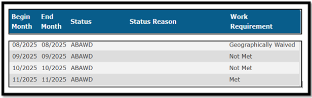 A new one-year statewide ABAWD time limit waiver is in effect from February 1, 2025, through January 31, 2026.