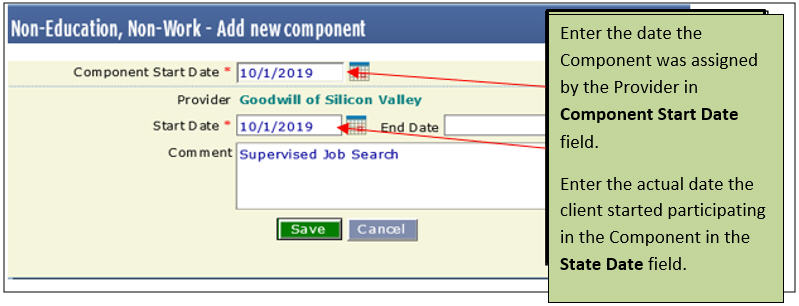 To assign a new Non-Education, Non-Work Component to a CFET participant, follow the steps below.