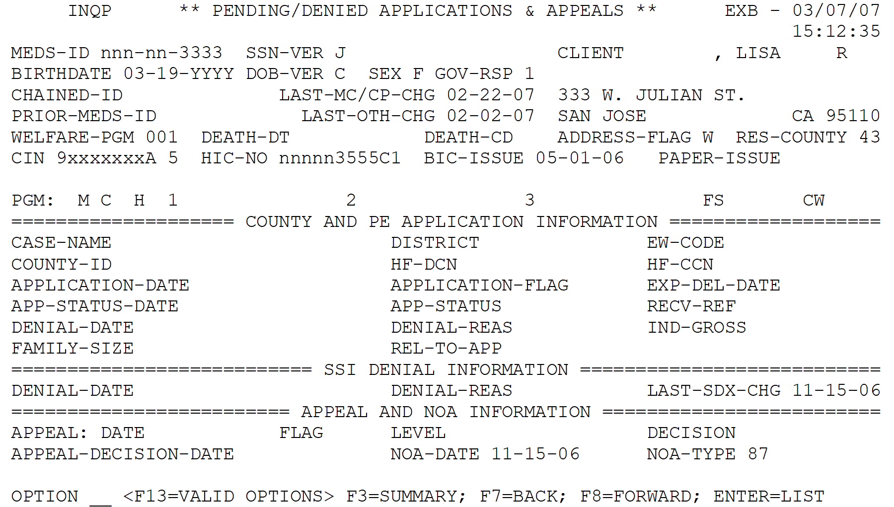 - The INQP screenThe INQP screen indicates an application has not yet been processed: